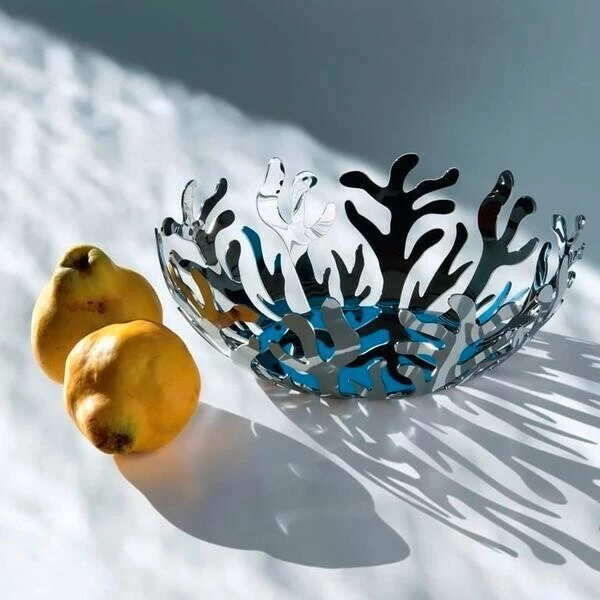 Diese Obstschale ist eine gelungene Kombination aus Design und Funktion: Die Schale Mediterraneo gehört zur gleichnamigen Serie des Herstellers Alessi. Ihre verästelte Form, die an Korallenriffe erinnert, wirkt filigran und modern. Sie können die Obstschale nicht nur zur Lagerung von Obst und Gemüse verwenden, die dank der offenen Gestaltung ausreichend mit Luft versorgt werden. Sie ist außerdem ein besonders glanzvolles Deko-Objekt auf dem Sideboard oder in der Glasvitrine.