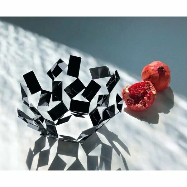 Die Obstschale La Stanza dello Scirocco aus der italienischen Designschmiede Alessi kombiniert Funktionalität mit kreativem Design. Der Entwurf stammt von Mario Trimarchi und entstand in einer Nacht, als der wilde und unberechenbare Scirocco Wind über ihn hinweg zog. Heraus kam ein kunstvoller Alltagsgegenstand, dessen Äußeres an herumfliegende Papierplättchen erinnern.