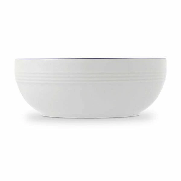 Das runde Modell ist aus spülmaschinenfestem und mikrowellengeeignetem Hartporzellan gefertigt und zeigt auf der Außenseite ein dezentes Relief aus horizontalen Linien. Der obere Rand verfügt zudem über eine schmale, blaue Einfassung. Die Müslischale mit 14 cm Durchmesser lässt sich auch für Eis, Obstsalat, Joghurt und Quarkspeisen nutzen. Sie ist ein vielseitiges Schälchen, das in keinem Haushalt fehlen sollte.