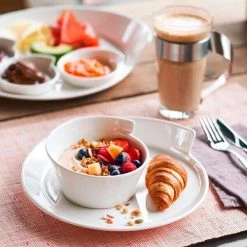 Gerade Linien und norddeutsche Bescheidenheit – die Müslischale aus der Kollektion Jeverland von Friesland in ihrem reinen Weiß und dem einzigartigen Relief passt an jede Tafel und jeden Frühstückstisch.
