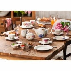 Ammerland von Friesland besticht durch seinen gemütlichen Keramikstil. Bauchige und runde Formen dominieren das Tischbild und sorgen für einen Wohlfühlfaktor im Landhausstil. Innovative Effektglasuren in blau, creme, und grau verleihen dem Service das gewisse Etwas. Die Serie aus Steingut ist spülmaschinen- und mikrowellengeeignet.