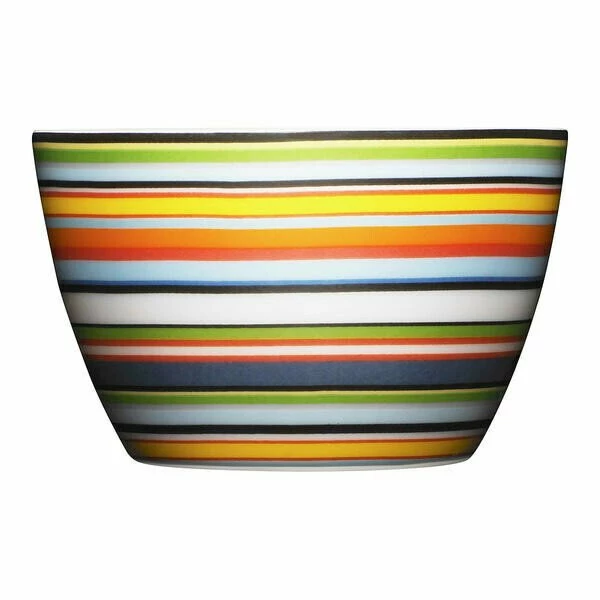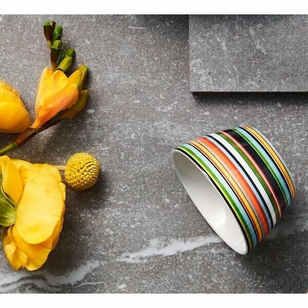 In der kleinsten Schale der Serie Origo orange von Iittala kommen Soßen, Dips, Gewürze und andere Köstlichkeiten auf den Tisch. Die bunten Streifen präsentieren ein modernes und frisches Design, dass sich wunderbar mit anderen Teilen der Kollektion Origo kombinieren lässt.