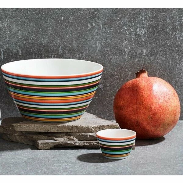 Die farbenfrohe Gestaltung der Schale in Orange erinnert selbst in der dunklen Jahreszeit an den Sommer. Sie gehört zur Serie Origo Orange und stammt aus dem finnischen Traditionsunternehmen Iittala. Der Designer Alfredo Häberli entwarf dieses zeitlose Geschirr 1999.