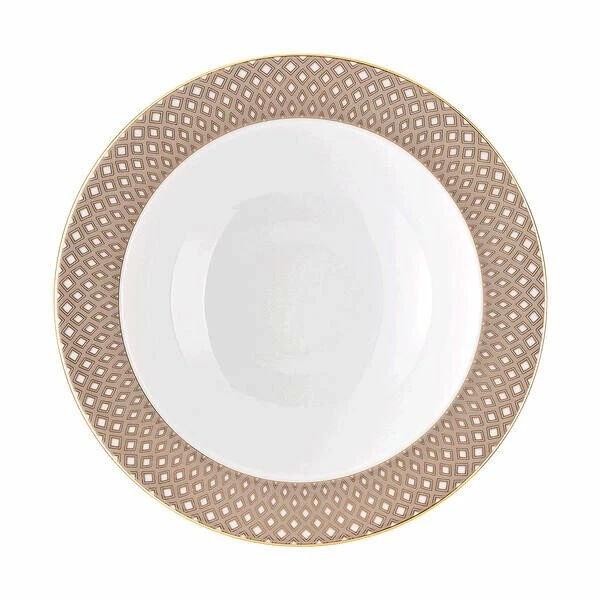 Die Dessertschale aus der Geschirrkollektion Francis Carreau Beige von Rosenthal verhilft zu einem formschönen Genussmoment während des Schlemmens von Eis oder Mousse au Chocolat. Die weißen Rauten, die sich auf dem Tellerrand auf ein entspannendes Beige betten, verleihen dem Dekor der Schale einen ausdrucksstarken Charakter. Mit der filigranen Goldkontur wird das Gesamtbild harmonisch abgerundet.