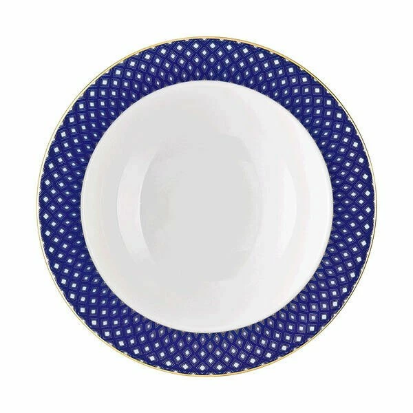 Mit dieser Dessertschale der Geschirrserie Francis Carreau Bleu von Rosenthal kredenzen Sie Mousse au Chocolat, Tiramisu oder Früchtekompott umrandet von einem blauen Dekor, das von weißen Karos unterbrochen wird. Die Fahne wird von einer goldenen Kontur abgeschlossen, die der Komposition einen luxuriösen Touch verleiht.