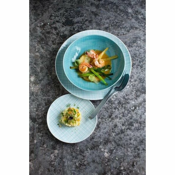 Die Müslischale Mesh Aqua von Rosenthal besticht durch ihr modernes und frisches Design. Dieses ist vor allem durch das Hellblau als Farbton und das Linienmuster gekennzeichnet. Mit einer Größe von 14 cm ist die Schüssel ideal für eine morgendliche Portion Müsli ausgelegt. Befindet sich doch einmal etwas anderes in der Müslischale, so ist diese einfach auch in der Mikrowelle verwendbar. Die Müslischale Mesh Aqua kann nach dem Frühstück bequem in der Spülmaschine gereinigt werden.