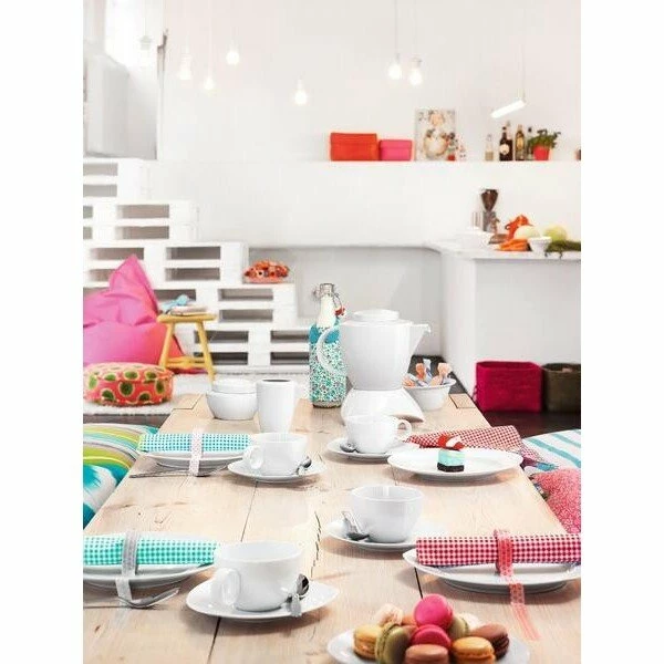 Schlicht und schön – so präsentiert sich die Serie Vario Pure von Thomas. Mit diesem herrlichen Geschirr decken Sie ansprechend Ihren Mittagstisch. In der konischen Dessertschale mit 14 cm Durchmesser lassen sich Desserts und Dips appetitlich servieren. Zwischendurch passen kleine Snacks wie Obst- und Gemüsesticks sowie Quarkspeisen in das Schälchen. Da greifen Groß und Klein gerne zu! Natürlich ist die Kollektion aus weißem Hartporzellan für die Spülmaschine und die Mikrowelle geeignet.