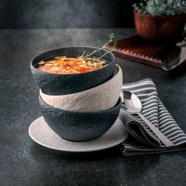 Selbst gemachte Köstlichkeiten: Die vielseitig einsetzbare Schüssel im edlen Schwarzton eignet sich hervorragend für eine Suppe, Müsli, hausgemachte Pasta oder süße Dessert-Variationen.