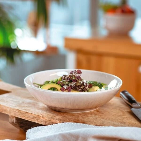 Die Präsentationsschale der Serie Perlemor Sand von Villeroy & Boch eignet sich hervorragend zum verführerischen Anrichten von Snacks und Knabbereien, für das Servieren von frischem Salat oder zum dekorativen Kredenzen von Obst und Gemüse. Das einzigartige Erscheinungsbild der Schale entsteht während des Glasierens, wenn die Farben liebevoll in variierender Stärke und fließend aufgetragen werden. Jedes Geschirrstück ist dadurch von unterschiedlichen Farbabstufungen und -übergängen geprägt, die für Einmaligkeit sorgen.