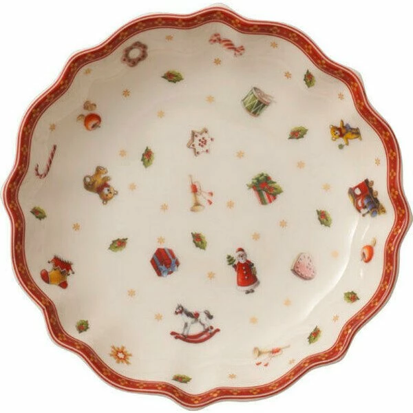 Die Kollektion Toy’s Delight von Villeroy & Boch weckt mit ihren verspielten Motiven in Rot, Grün und Weiß Kindheitserinnerungen und versprüht nostalgischen Charme. Das europäische Traditionsunternehmen Villeroy & Boch steht seit 1748 für Porzellan höchster Qualität. Diese dekorative Schale ist inspiriert von nostalgischen Papptellern und eignet sich zum Aufbewahren von Keksen, Obst, Nüssen oder Plätzchen. Gefertigt aus hochwertigem Porzellan. Mikrowellensicher und am besten von Hand reinigen. Zaubern Sie festliche Gemütlichkeit in Ihr Zuhause mit Villeroy & Boch.