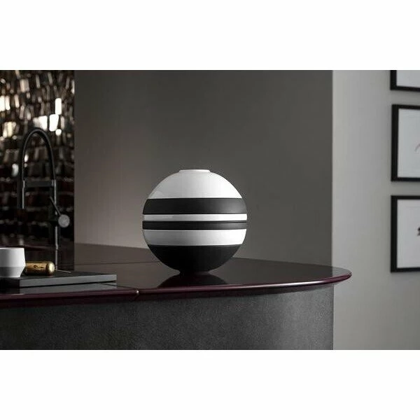 Die flache Schale aus weißem Porzellan ist eines von sieben Elementen des Geschirr-Sets La Boule, welches zu einer Kugel platzsparend und dekorativ gestapelt werden kann. Die flache Schale eignet sich als Frühstücks- oder Dessertteller.